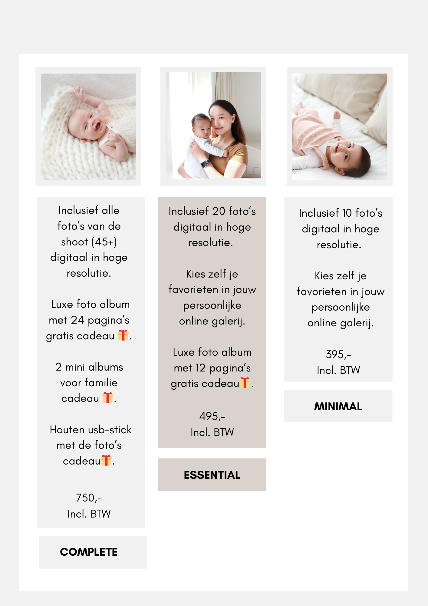 ✅ €25 korting als je een zwangerschaps shoot + newborn (of baby) shoot boekt.